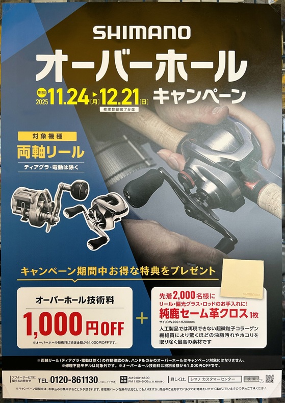 シマノオーバーホールキャンペーンが11/24よりスタート!
